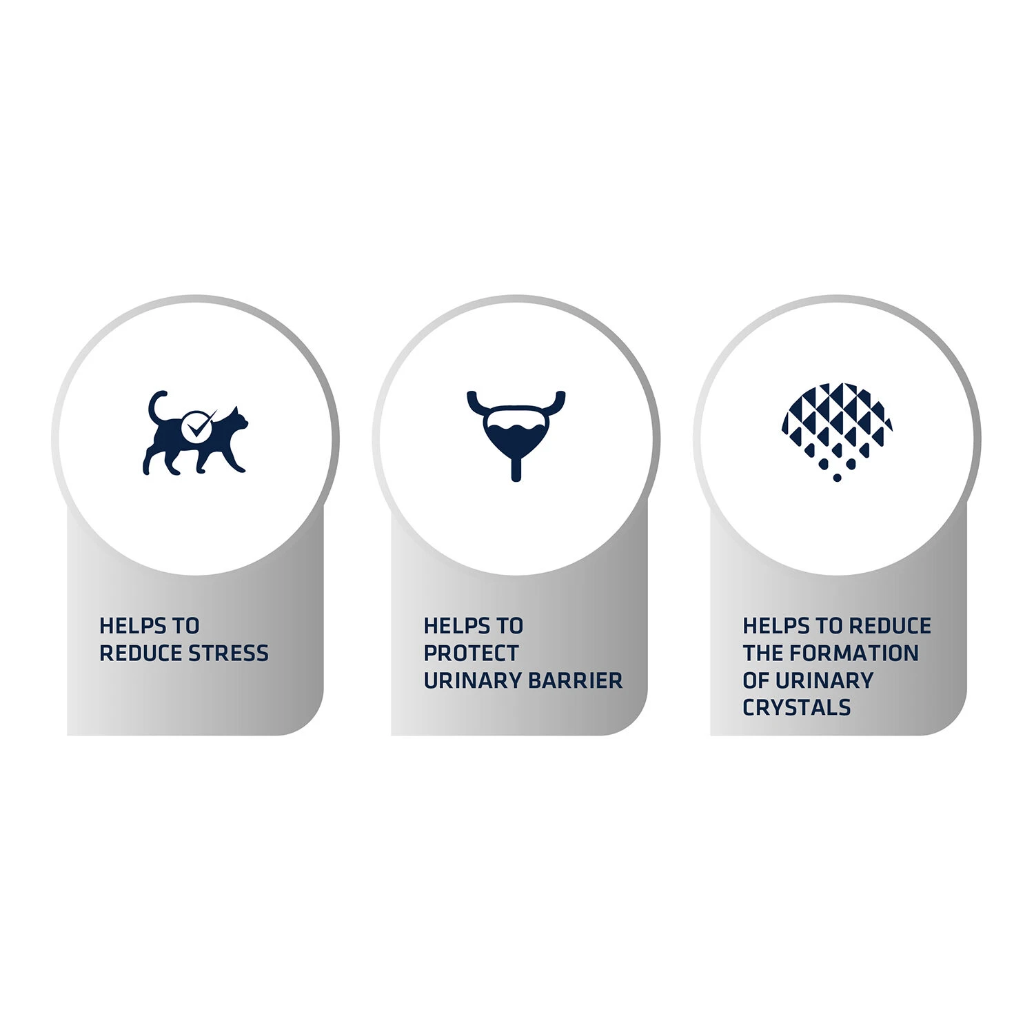 Advance Veterinary Diets Urinary Stress van het merk Affinity is een complete dieetvoeding voor gesteriliseerde en gecastreerde volwassen katten. Deze voeding bevat een matig energiegehalte en is rijk aan vezels om het lichaamsgewicht onder controle te houden. Het bevat een matig magnesiumgehalte en urineverzurende eigenschappen die de kans op terugkerende struvietstenen in de urine verminderen.