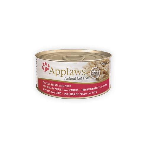 Applaws Cat Chicken Breast & Duck is verkrijgbaar in blikjes van 70 en 156 gram.
