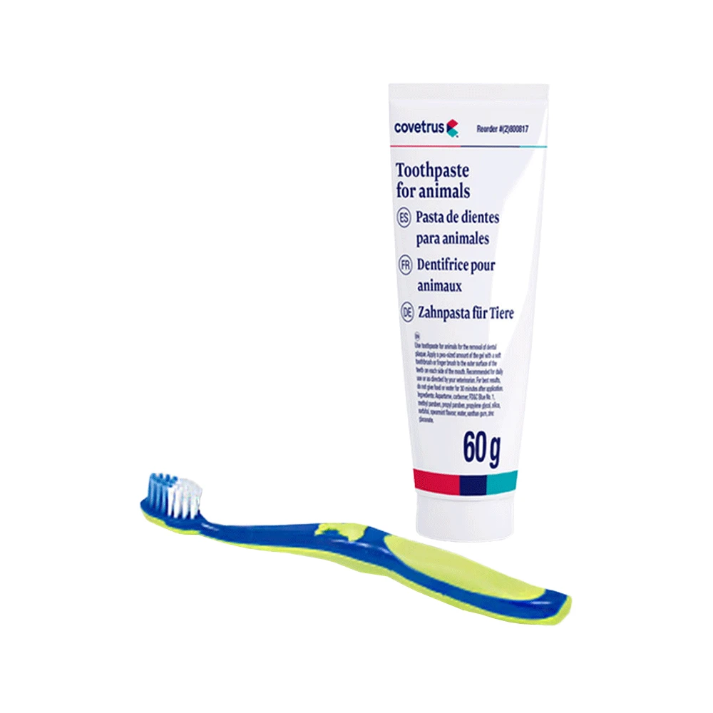 Net als bij mensen, is gebitsverzorging bij honden ook erg belangrijk voor de gezondheid. Verzorg het gebit van uw viervoeter met de CVET Tandenborstelset. Deze set bevat een tandpasta en een tandenborstel. Deze set helpt u het gebit van uw viervoeter te verzorgen!