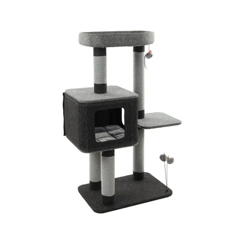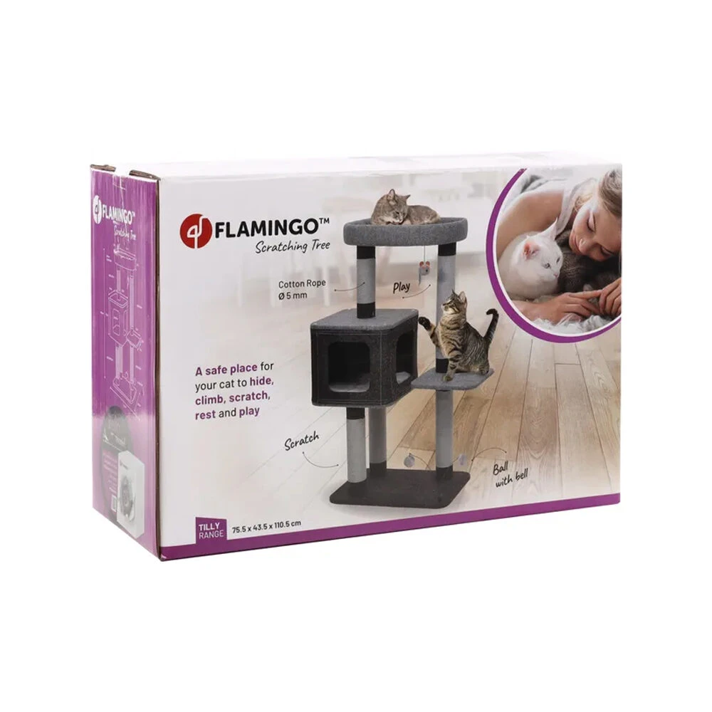 Ontdek de elegantie en het ultieme comfort van de Fati krabpaal van Flamingo voor uw geliefde kat. Met zijn trendy design, schuilhuisje, ligmand en katoenen krabtouw biedt deze krabpaal de ideale plek om te spelen, te rusten en nageltjes te verzorgen. Bovendien zorgt het uitneembare kussen ervoor dat het schoonmaken een fluitje van een cent is!