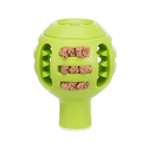Met de Trixie Lick’n’Snack bal kunt u uw hond op een fijne en rustgevende manier voorzien van afleiding. Het likken werkt kalmerend en door de opname van een geringe hoeveelheid snacks werkt de Lick’n’Snack bal goed bij langdurige afleiding. De Lick’n’Snack bal is te vullen met de wat grotere beloningssnoepjes of met bijvoorbeeld leverworst. Voor dit product is ook een handleiding beschikbaar.