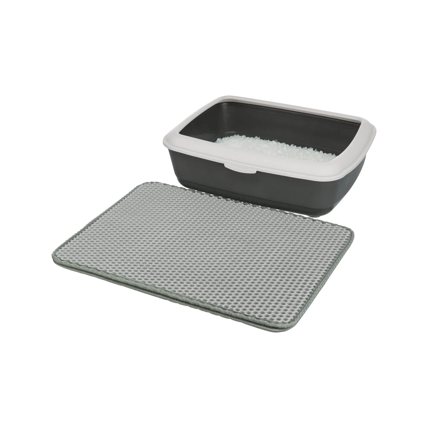 Houd je omgeving schoon met de opvangmat voor kattenbakken van Trixie. Door het gestructureerde oppervlak vangt de mat gemakkelijk de kattenbakkorrels op! De mat is gemaakt van zacht materiaal waardoor het makkelijk te buigen is om de opgevangen kattenbakkorrels te verwijderen. Het reinigen van de mat gaat ook gemakkelijk, dankzij het open-randen-design. De dubbele laag kan met klittenband verbonden worden aan elkaar.